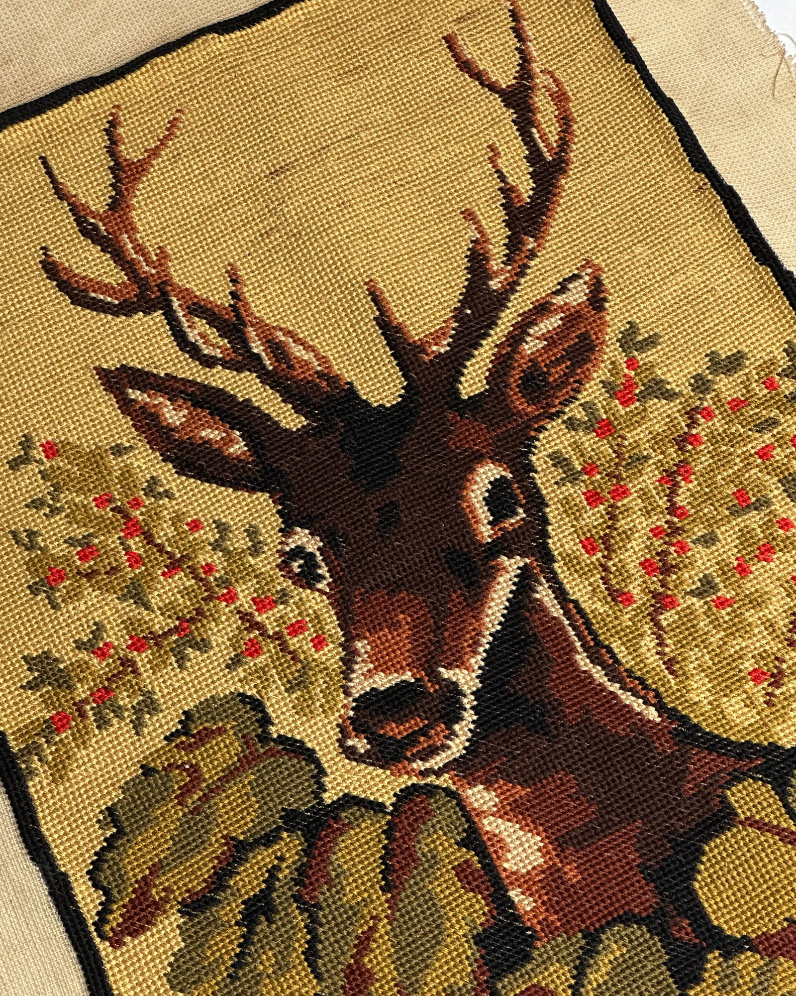 Ανέδειξε τη φυσική ομορφιά και την κομψότητα της άγριας ζωής με αυτό το χειροποίητο vintage κέντημα, που απεικονίζει ένα τρυφερό ελαφάκι σε ένα μαγευτικό δασικό τοπίο. Ιδανικό για διακόσμηση σε κορνίζα, προσδίδει μια γλυκιά και ρομαντική πινελιά στον χώρο σου.