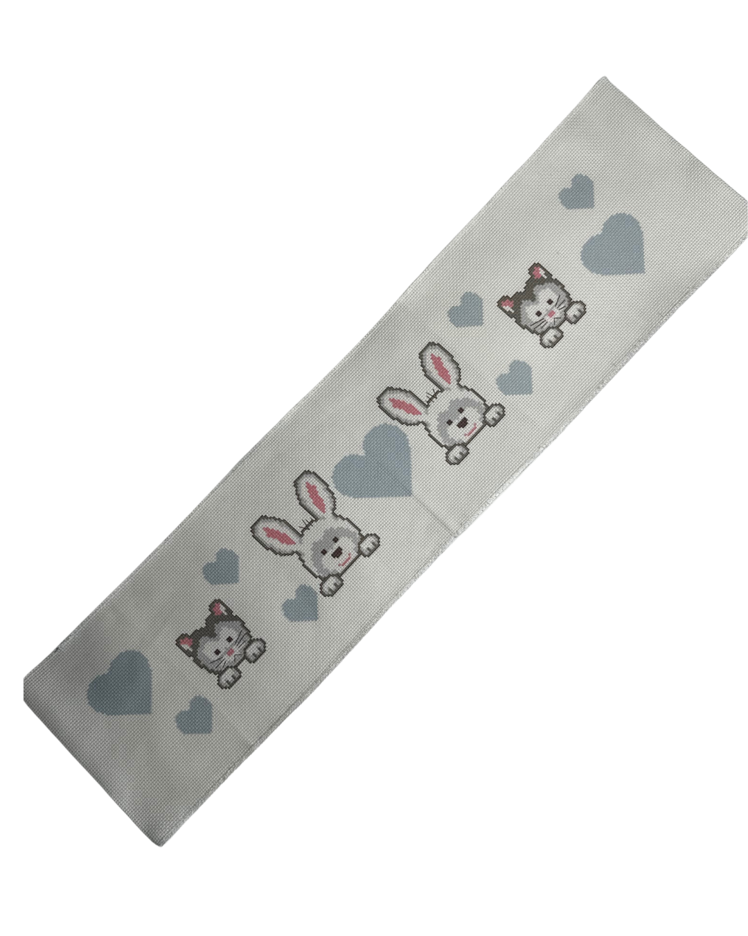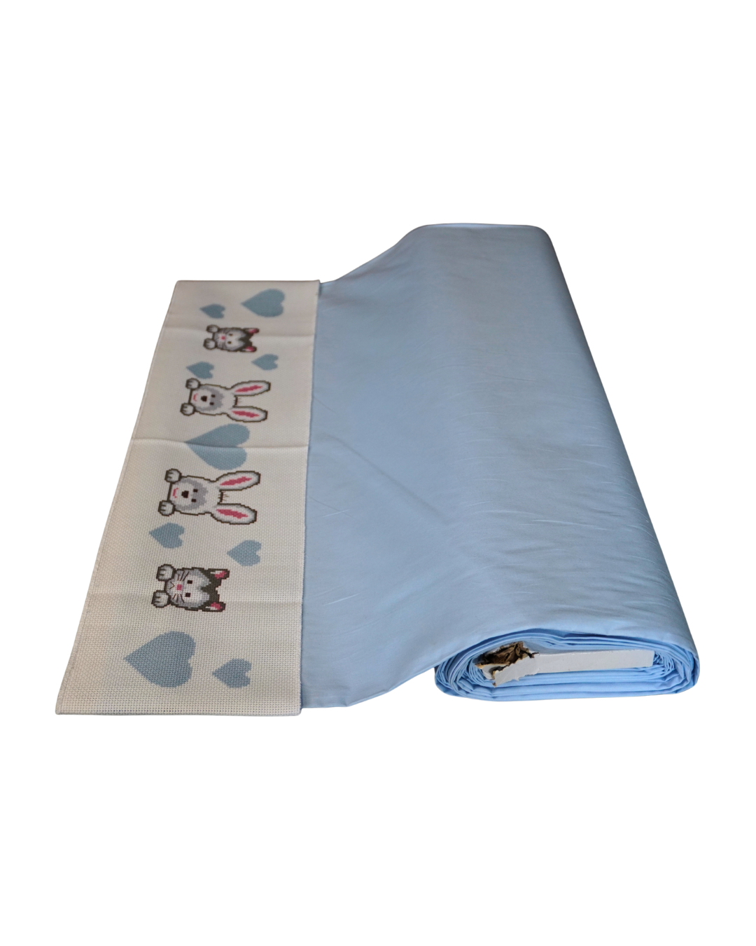 Δώσε μια τρυφερή και παραμυθένια πινελιά στο παιδικό δωμάτιο με αυτήν τη χειροποίητη κεντημένη φάσα! Με υπέροχο σχέδιο από λαγουδάκια και γατάκια σε σιέλ αποχρώσεις, αυτή η φάσα είναι ιδανική για να διακοσμήσεις την κούνια, το κρεβατάκι ή ακόμα και το καροτσάκι του μικρού σου. Το προσεκτικά επιλεγμένο ύφασμα προσφέρει ανθεκτικότητα και είναι απαλό και ασφαλές για το ευαίσθητο βρεφικό δερματάκι.